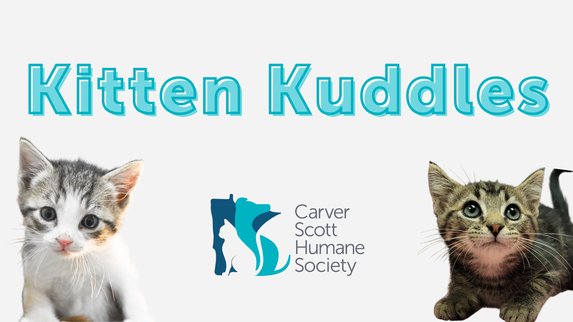 Join us for our heartwarming Kitten Kuddles fundraiser on Saturday, June 28th, from 2:00 PM to 4:00 PM at Carver Scott Humane Society (822 Yellow Brick Road, Chaska). Reserve your private 15-minute session in a room full of adorable kittens! Each room can accommodate up to 4 people, with all children required to be accompanied by an adult. Multiple reservations are welcome but must be submitted separately. Your registration fee (all but $5) serves as a tax-deductible donation to support our current and future feline residents. While reservations may be transferred, they are non-refundable. Don't miss this purrfect opportunity to create lasting memories while supporting a great cause! Thank you for your support of Carver Scott Humane Society!